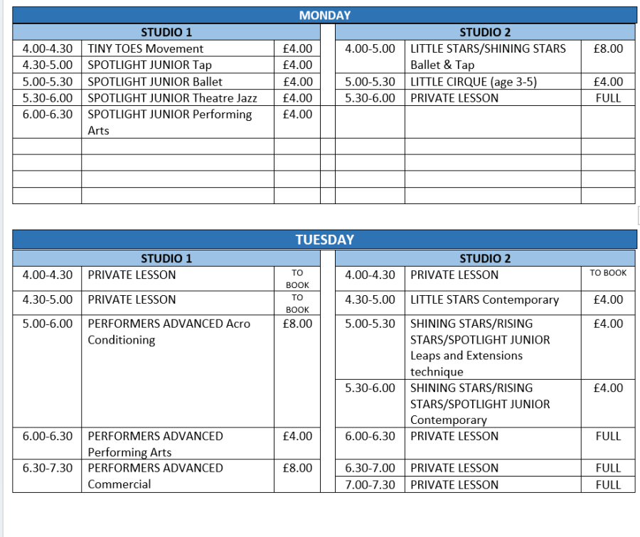SPOTLIGHT JUNIORS: Age 10-13yrs (approx)